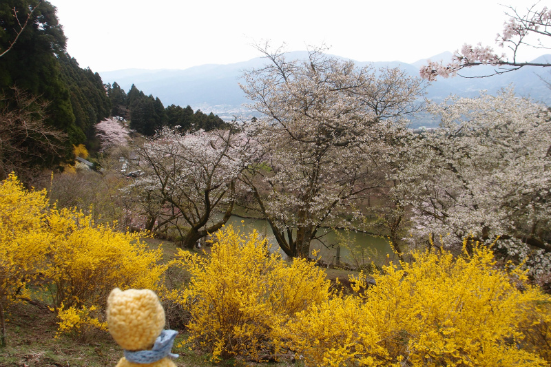 レンギョウもちょうど見頃。池のまわりの桜が一気に咲き揃うのは来週くらいかな。