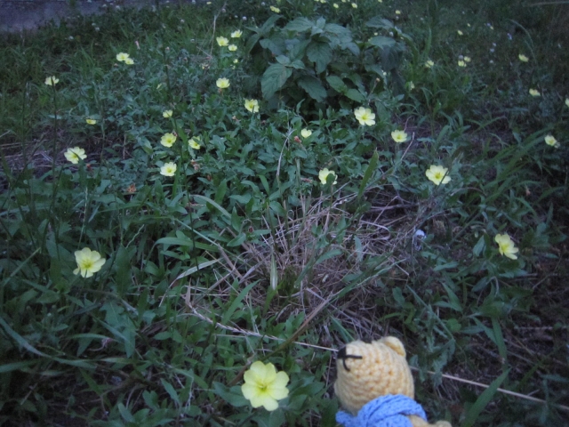 待宵草のレモン色が目を引く空き地。