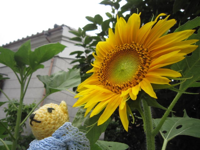 朝、半分開きかけていたひまわり。