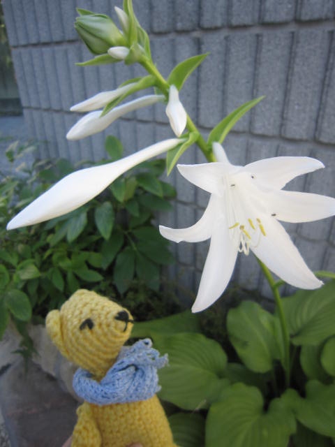 ぷっくりしていた蕾のギボウシ、今朝第1号が開花。