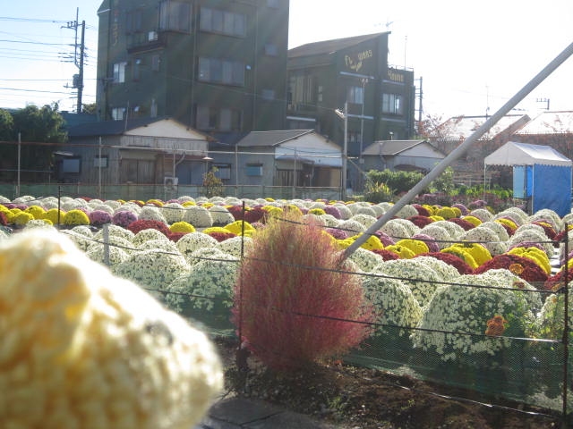 信号待ちでとまったら、横に一面のざる菊。