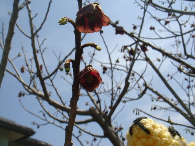 昔っから庭に植わっていたのに気にとめたことがなかったけど、ポポってこんな花が咲くのか。wikiには「肉の腐ったような臭い」とかあるけど・・・高いところだからよくわからん。