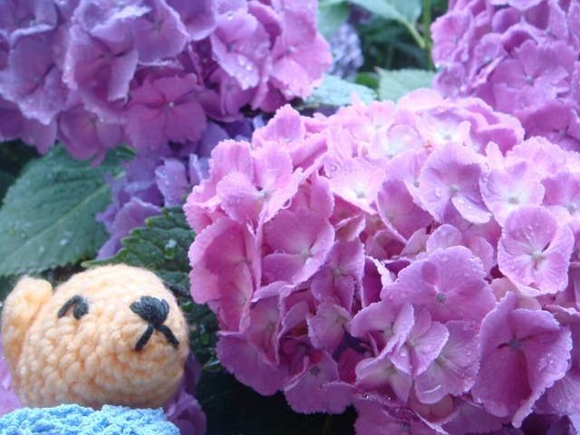 昨日の昼間は気の毒なくらいぐったりしていたアジサイたち。