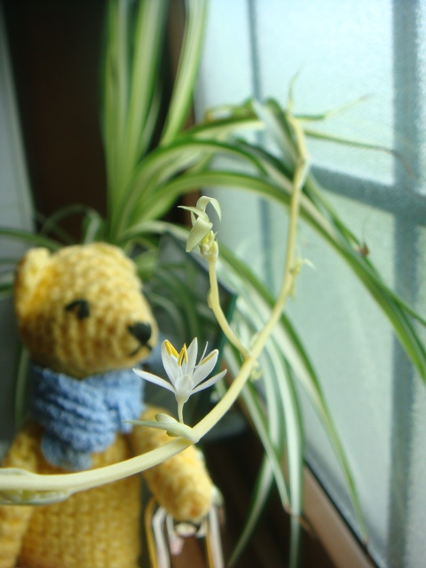 特別めずらしくもなくそこらにある印象の観葉植物オリヅルラン。ここ数日で茎がぐーんと伸びてきて