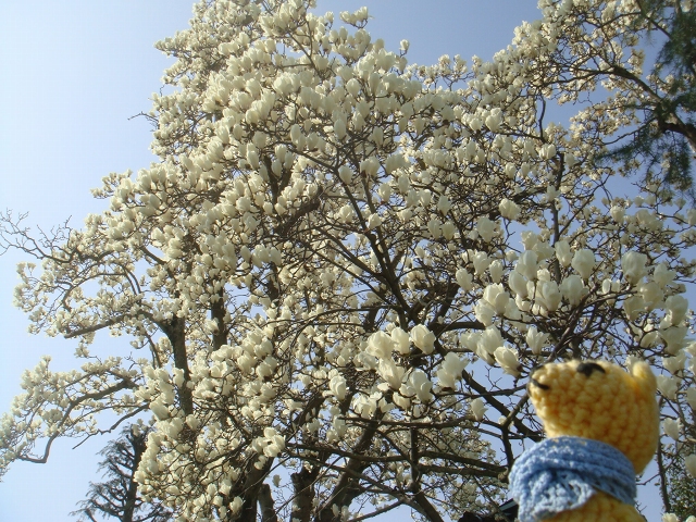 ひらいたばかりのハクモクレンの白さは格別。