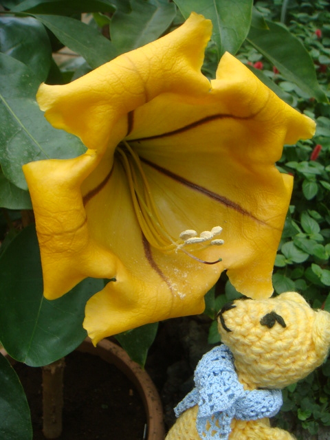 フラワーガーデンに行ったら、ラッパバナという花がちょうど開花中だった。