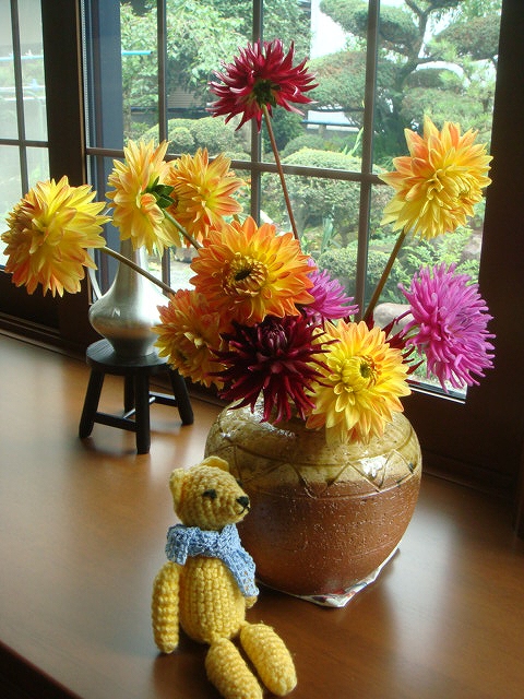 鮮やかな色のダリア。
