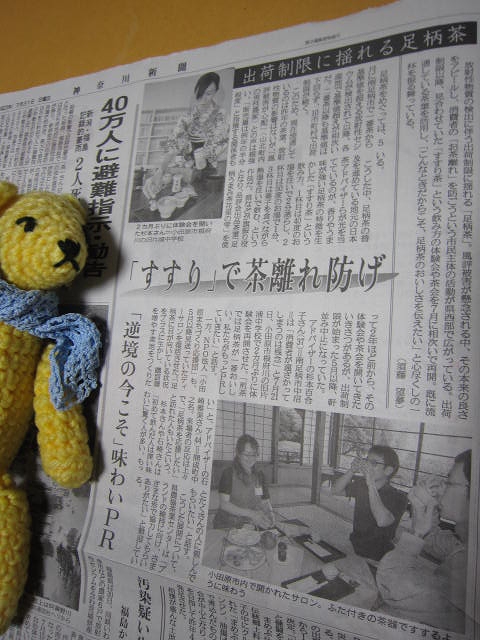 先日の旧片中WSでのすすり茶体験のとき、神奈川新聞さんが取材にみえてました。31日付けの新聞に"「すすり」で茶離れ防げ”という記事で掲載されてますので読んでみて下さいね!