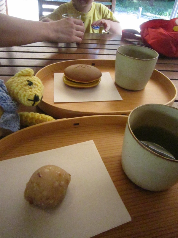 くるみ餅やどら焼き、甘いものと日本茶でおやつタイム。