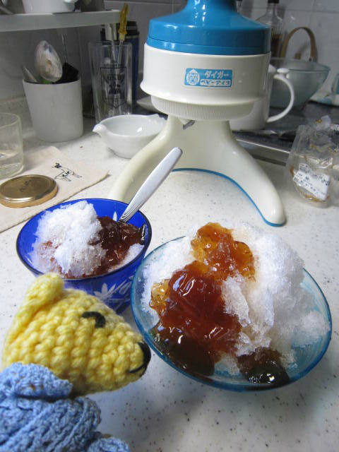 いつも湧き水で氷をつくっているのでかき氷にするとそりゃ氷だけでおいしいのよね。