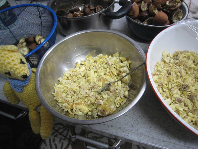 台風の影響で昨日は朝から家にこもってたので、また1.5kgほど栗ペーストができてしまった。