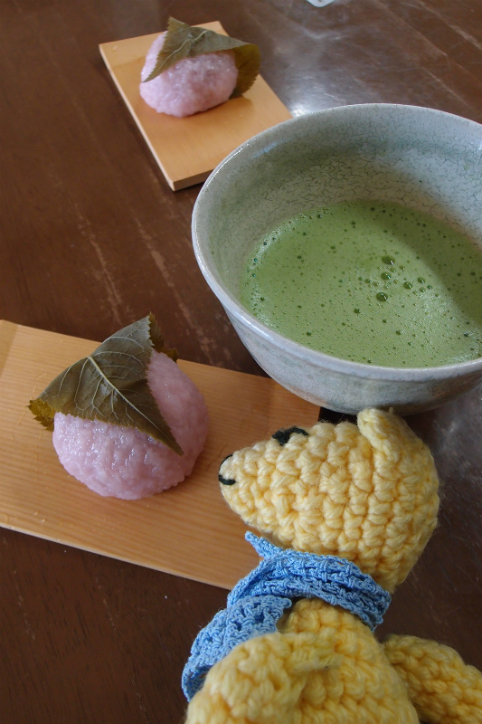 今年初の道明寺をお抹茶でいただきました。