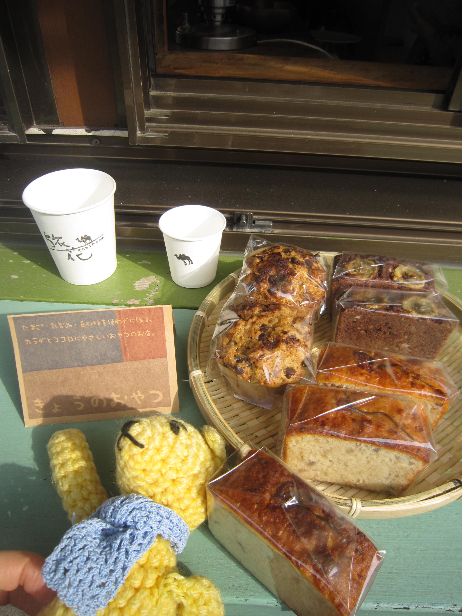 朝、旅花にふらり、エスプレッソをいただく。カウンターにお菓子発見。