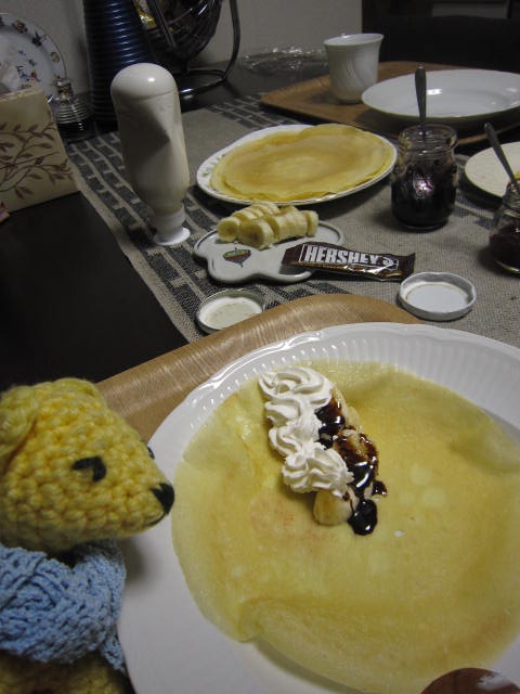 久々にクレープメーカーで深夜のクレープ大会。新人クレープ職人はかなりスジがよくてきれいなクレープ量産。