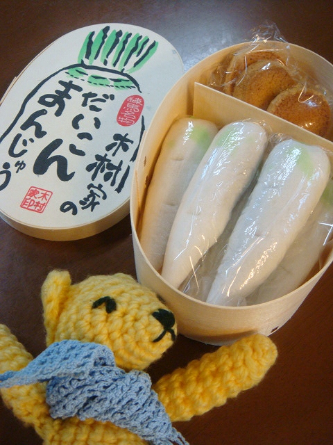 練馬名物という「だいこんまんじゅう」をいただいた。細かいとこまでリアルな大根!そして面白さ以上の美味しさにびっくり。とてもおいしいお饅頭でした。