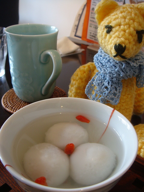 昨日のランチデザートに食べた黒胡麻湯団子、湯円。