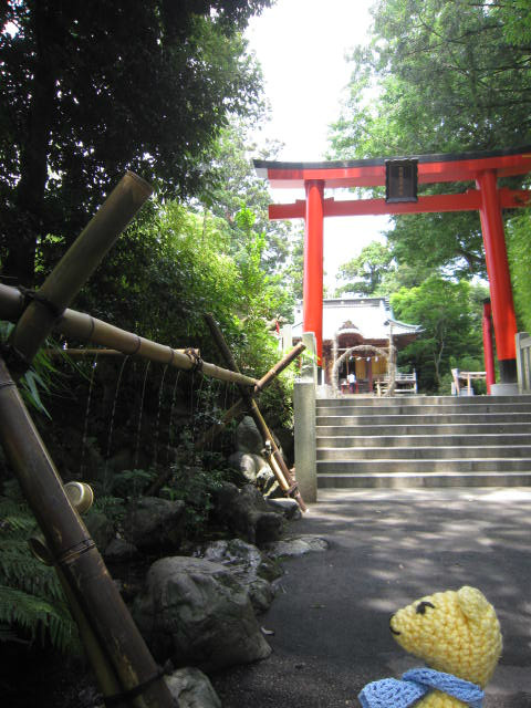 涼しげな手水と境内には夏越の大祓の茅の輪。またお参りに来よう。