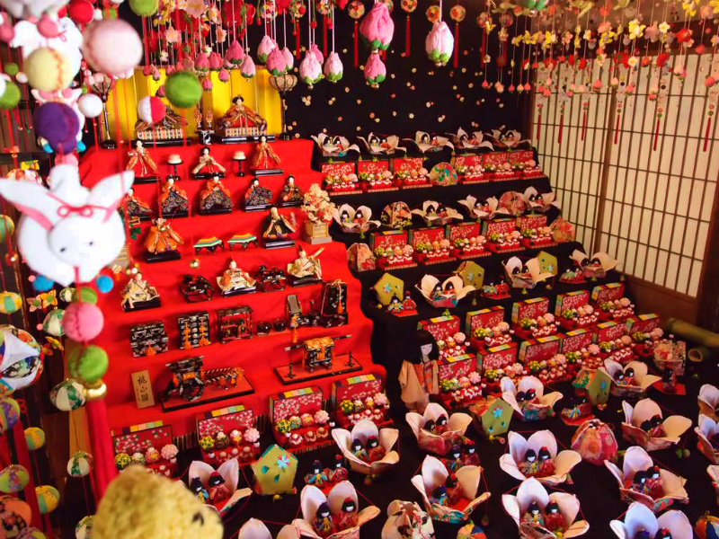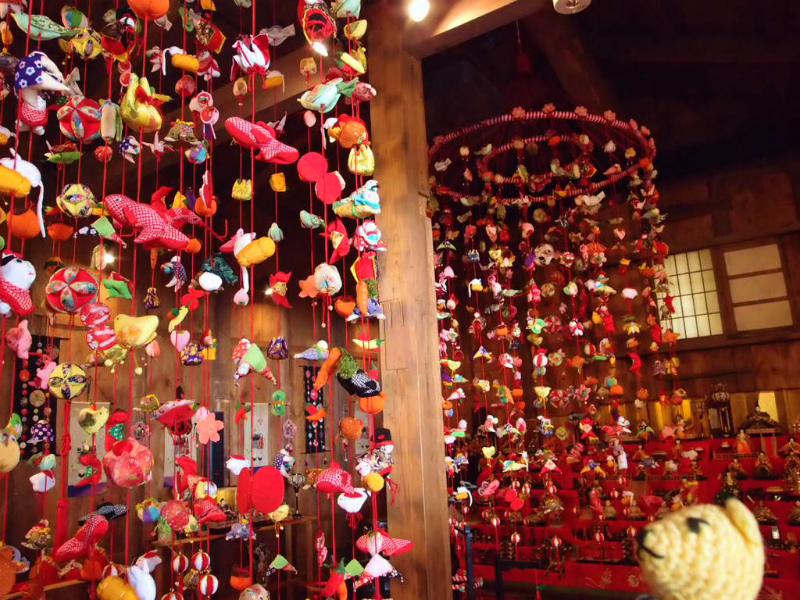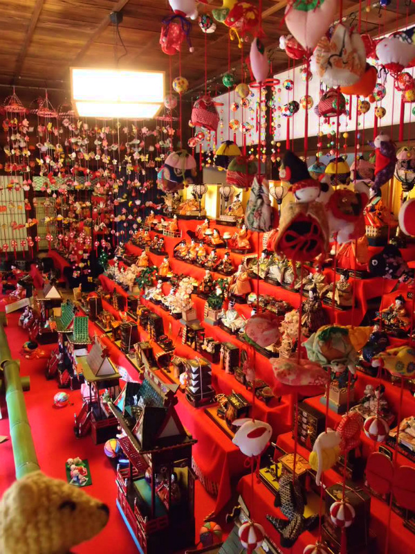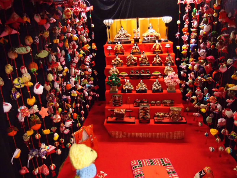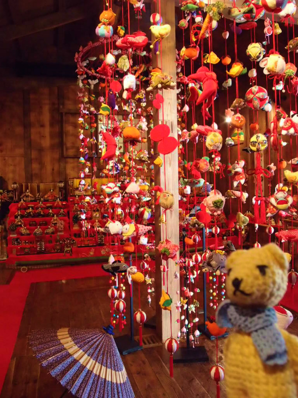 瀬戸屋敷のひなまつり。土蔵に大きな大きなつるし雛も飾られとても豪華で華やか。
