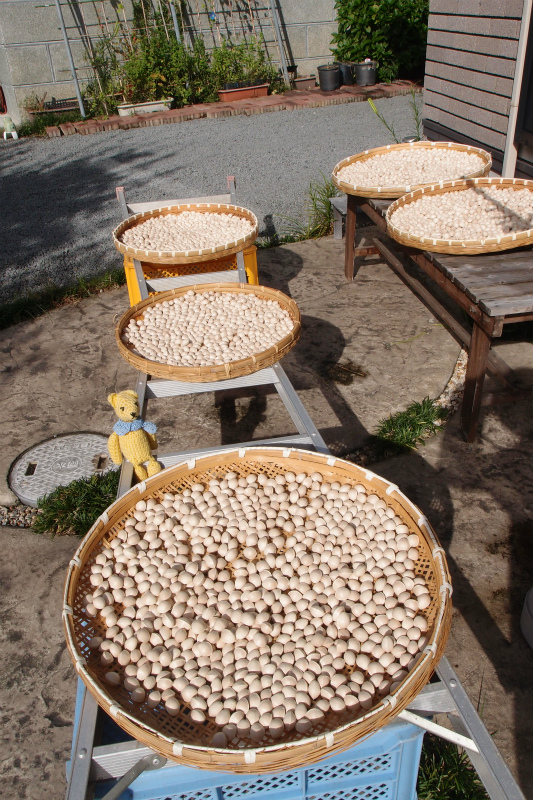 お天気のいい日がなかなかなくて、銀杏干しは気を揉みますな。
