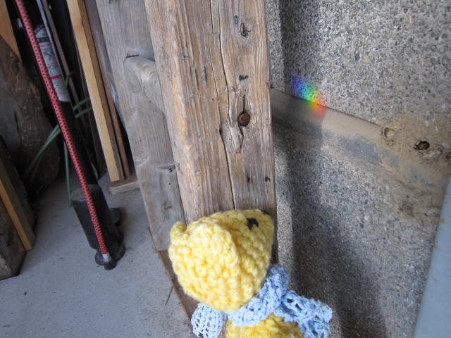 自転車の反射板からの屈折かな、壁が七色に光ってた。