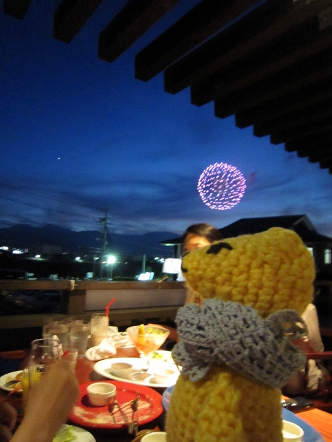 酒匂川の花火が見られるテラス席の予約が取れたよ!とのありがたい連絡網が♪ゆったりと食べたり飲んだりしながらの花火観覧、贅沢な時間でした~。