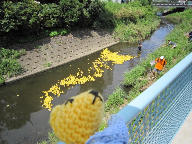 先週の土曜日に二宮の葛川でダックレースが開催されていた。ちょろっと見に行ったら黄色い集団がゆるゆる漂流していてたぶんそれを追っていたご様子。ま、それはそれでなかなか面白いものをみたな。