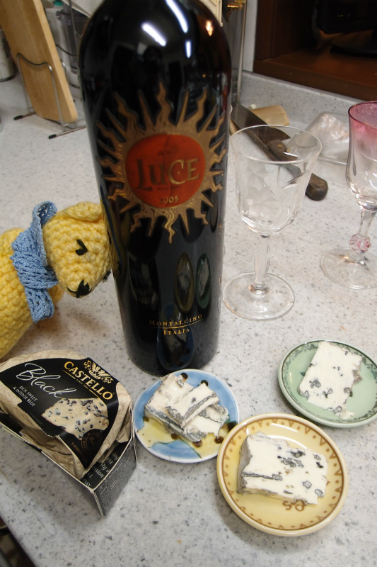 美味しい青カビチーズ、キャステロブラックとトスカーナの赤ワイン、ルーチェ。