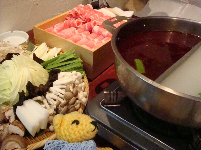 初めての火鍋で突発的に新年会。ラムと黒豚の肉と