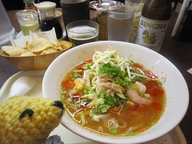 冷トムヤムは日本人向けあっさり味で少しもの足りないかなと食べ始めは思いましたが、モヤシ&パクチーやらレモン汁やらピリ辛のエビせんやらでかなり好みの味になり、結局スープまで飲み干して完食!でした~。あはは。