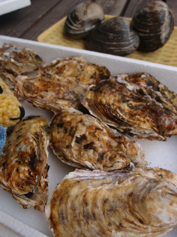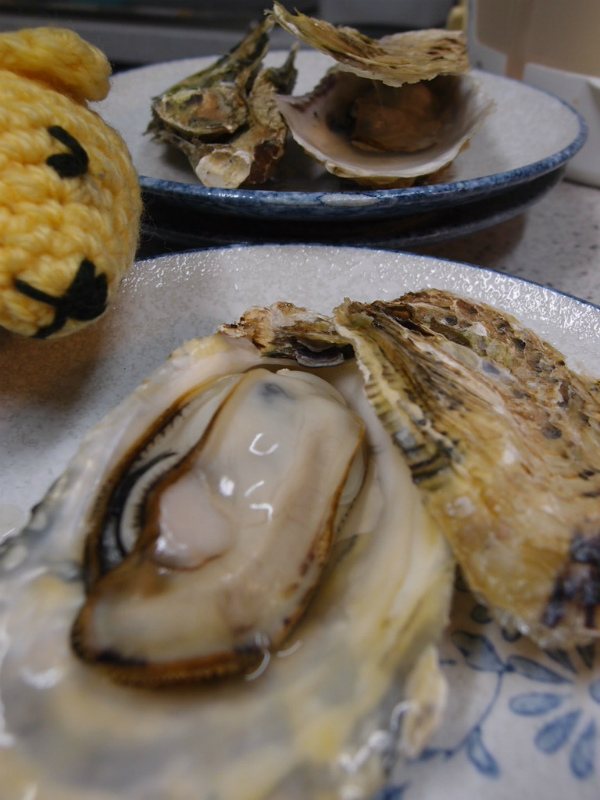 殻つき牡蠣、バンザーイ!今日はホッキ貝とともに貝祭り。