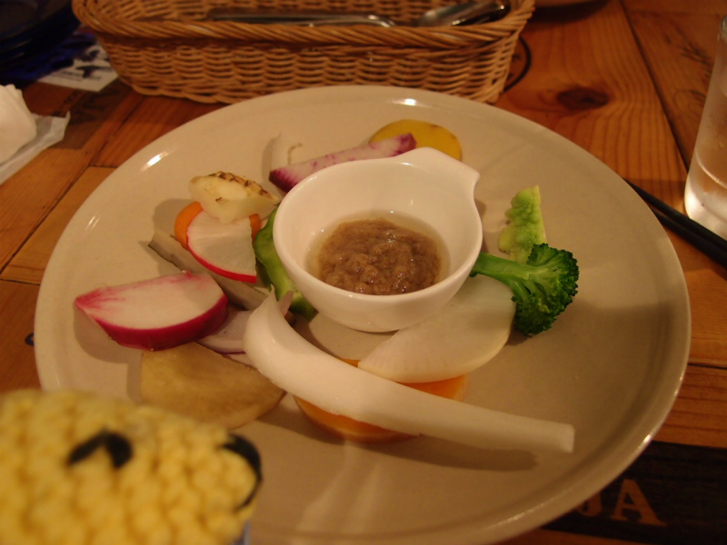 バーニャカウダはおそらく15種類以上の野菜が!珍しい野菜も多くて楽しかった。