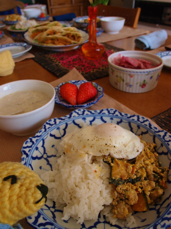お豆腐やカボチャの入ったマイルドなガパオや絶品トムガーカイでおなかいっぱい!