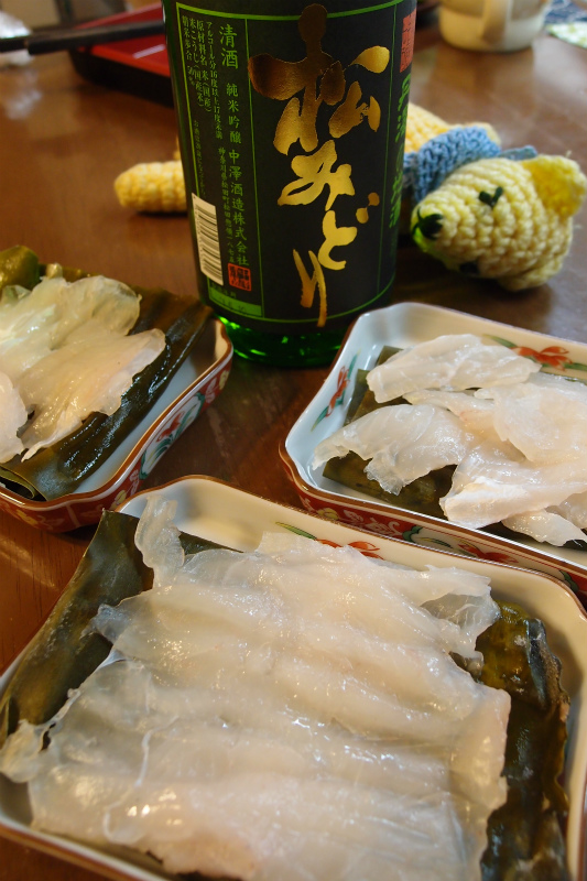 冷凍保存のとっておき金沢土産、やまきち商店のウマヅラハギの昆布〆。