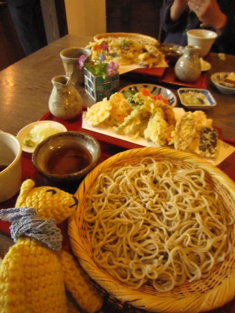 春の野菜の天せいろ。右端の椎茸のようなのが蒟蒻の天麩羅だった事を書き留めておきたくて。