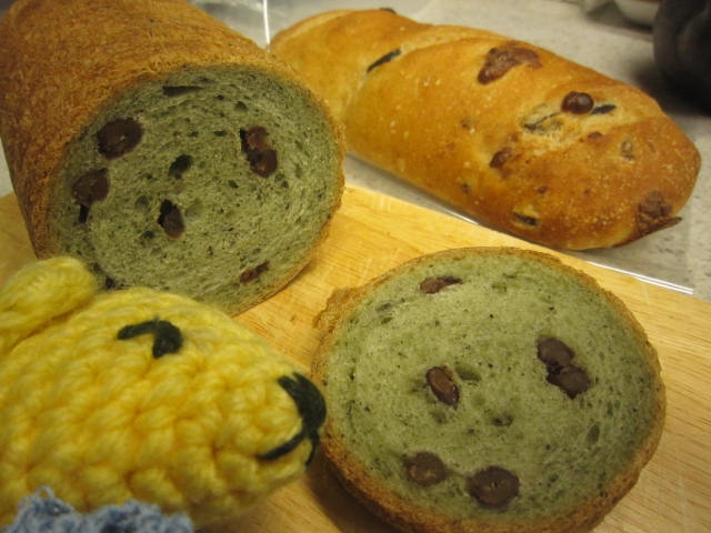 焼き立ての「ラウンドよもぎ」と画像奥に見える「オリーブチーズ」もほんとうにおいしかったー!