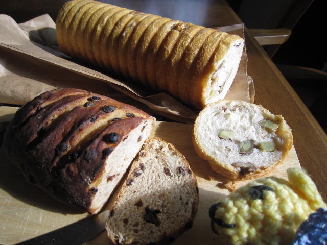 くるみとさつまいものラウンドパンとこぶた畑の小麦粉を使ったカレンツ入りのパン。