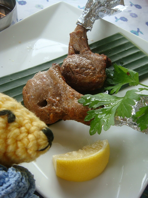 サイドワゴンが出てきてタンドリー串を目の前で外してもらったラムチョップ。旨かったー。でも2本だけのために、なんかすいません。