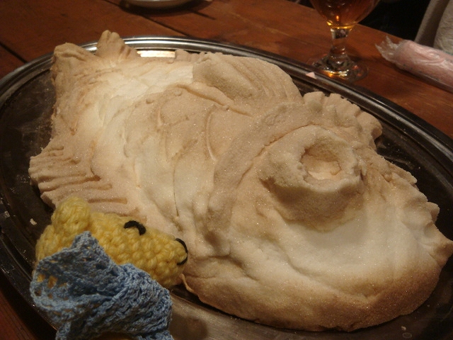 麺房亭のがっつり食べまくりコースは、大迫力の鯛の塩窯焼きから始まった。