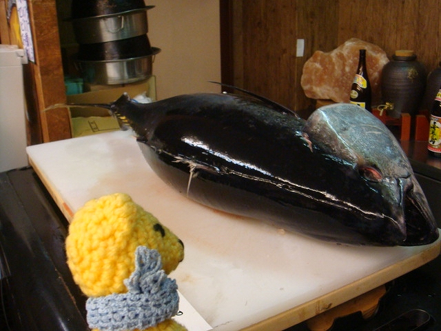 お店に入ったら混んでたので出ようとしたら、入口からこのマグロが!こりゃ食べなければ。