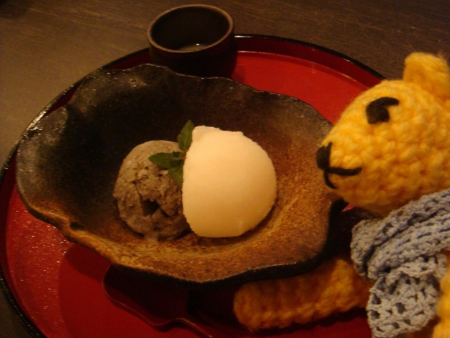 甘みは好みに応じて練乳をかける黒ゴマとお米のシャーベット。
