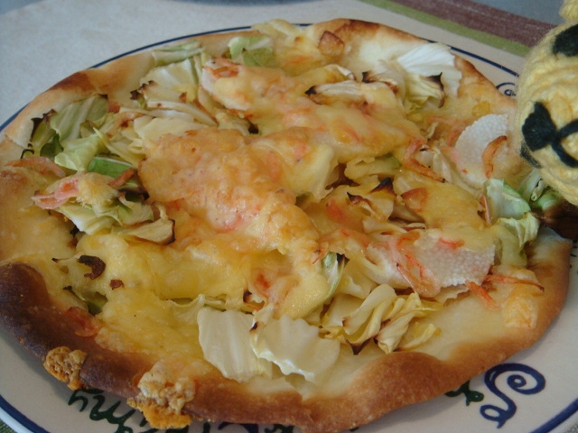 昨日ヨコヤマのりんごのピザをいただいた時に話題に出た小エビと山芋のピザ。